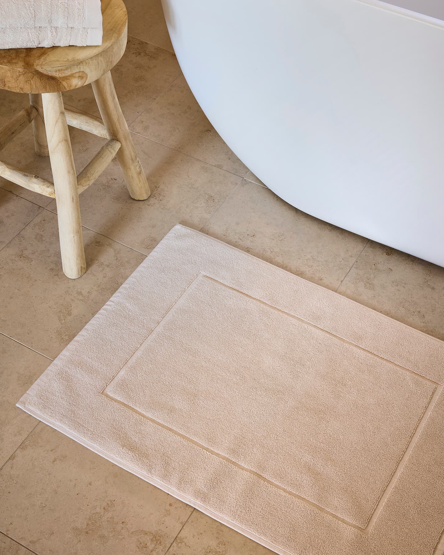 En mjuk badrumsmatta i ekologisk bomullsfrotté som är skön att sätta fötterna på och har en utmärkt absorptionsförmåga. Mattan har en dekorativ ram och finns i två storlekar.