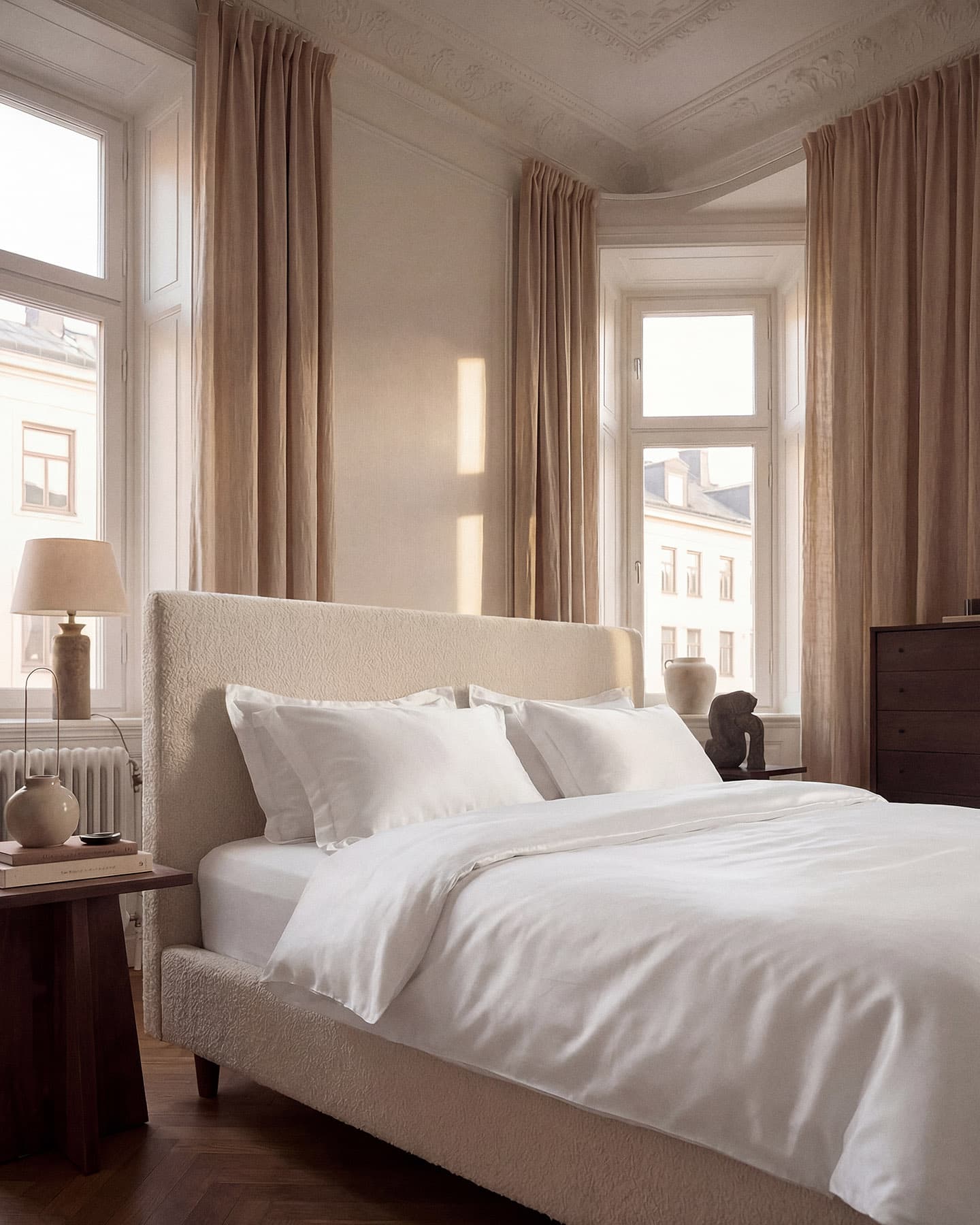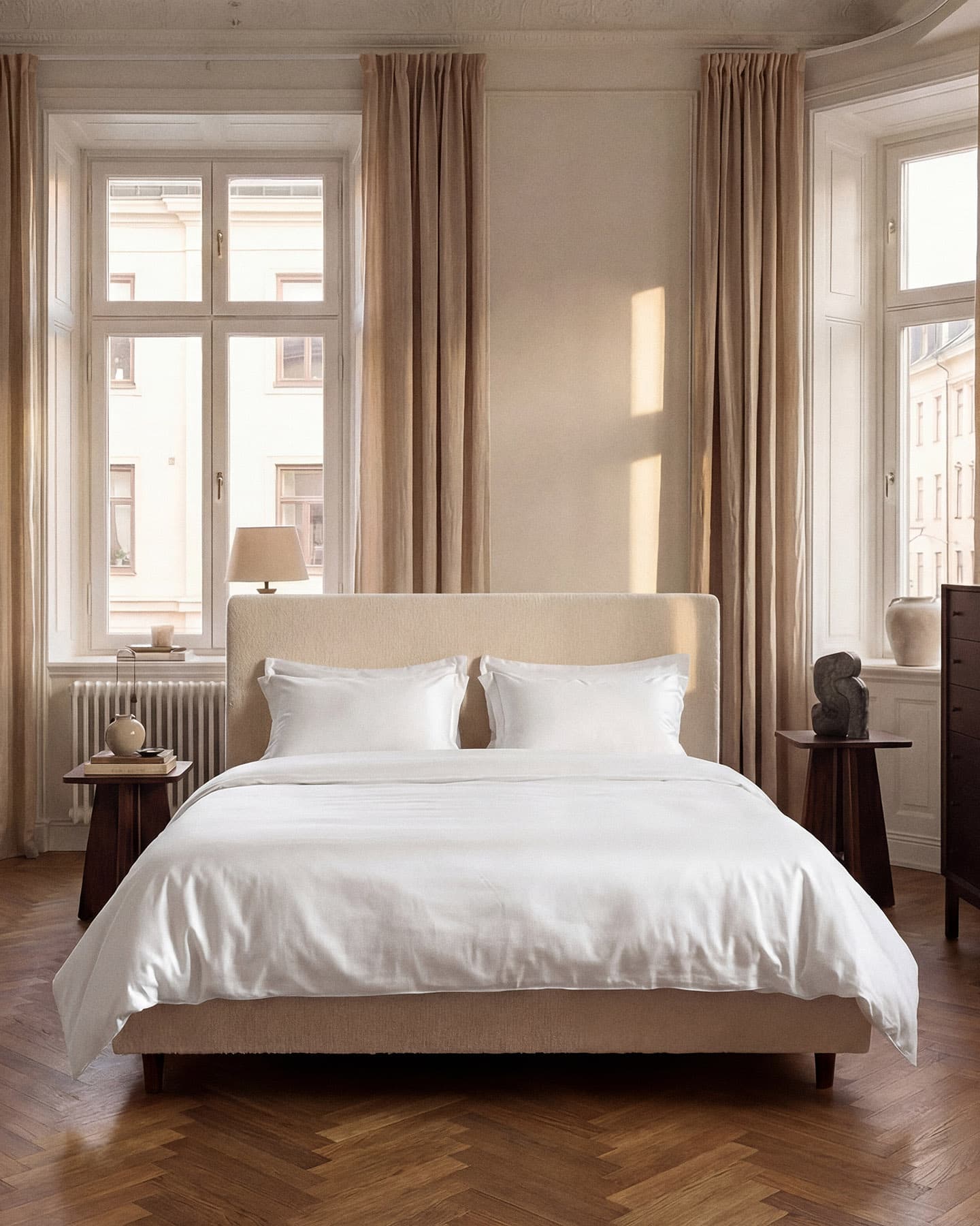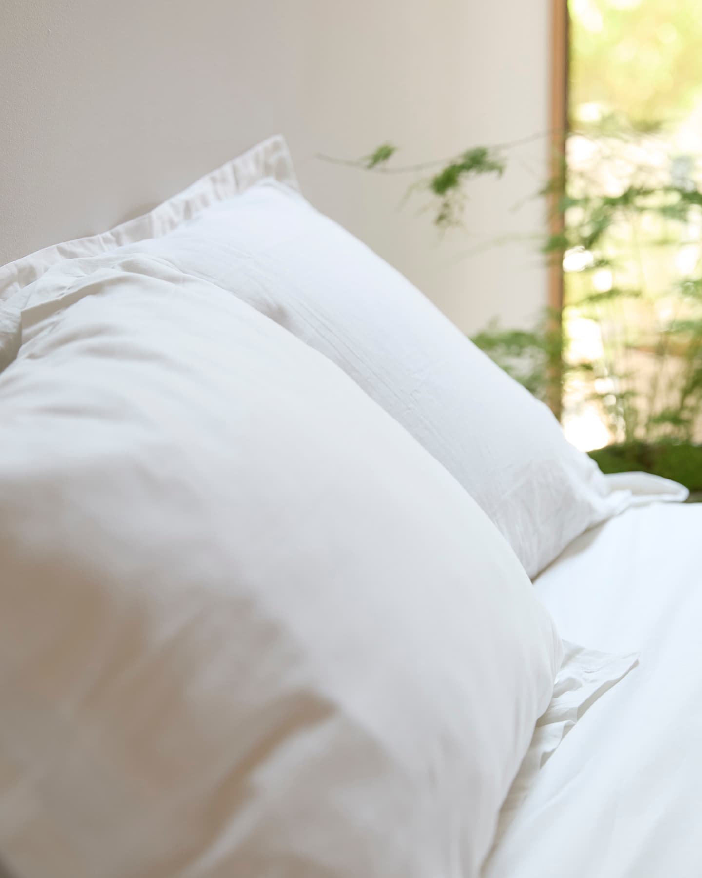 ..är vår mest självklara design. Med en noga avvägd bredd på vingen runt örngottet och där påslakanet har en enkel form där de fina detaljerna som de vackra knapparna och den arbetade sömnaden framhävs.