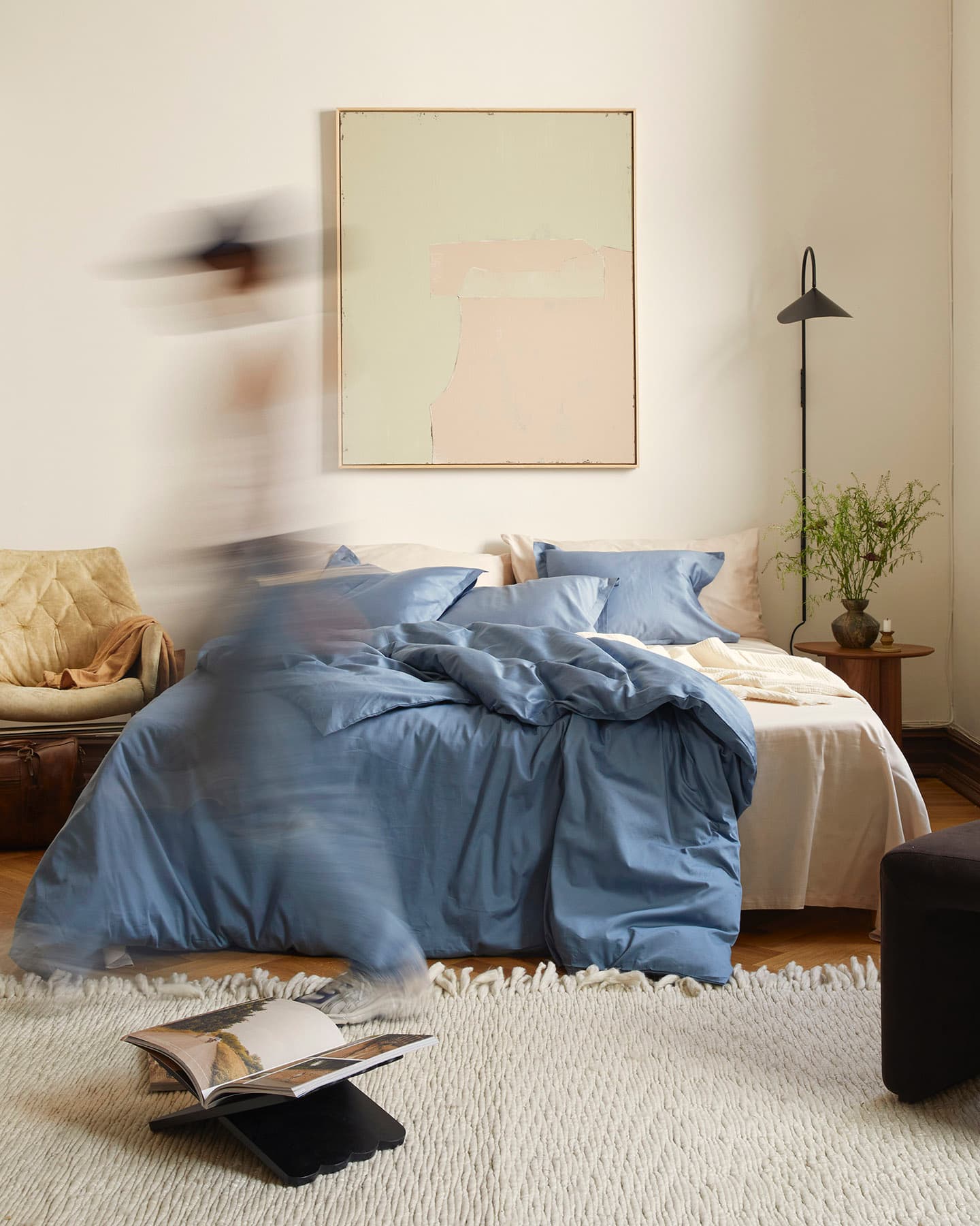 ..är vår mest självklara design. Med en noga avvägd bredd på vingen runt örngottet och där påslakanet har en enkel form där de fina detaljerna som de vackra knapparna och den arbetade sömnaden framhävs.